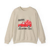 Soft, warm, and quietly cheerful — this crewneck carries a little roadside romance. A vintage red pickup spills a cascade of hearts across the chest, hand-drawn and lightly distressed for a cozy, nostalgic feel. The mid-weight cotton-poly blend settles comfortably on the shoulders and the classic crew neckline frames the artwork so it reads like a small, wearable scene. Wear it on slow mornings, on coffee dates, or while wrapping up Valentine’s notes — it’s the kind of sweatshirt that folds instantly into everyday rituals and adds an easy, thoughtful touch to moments with someone you love.